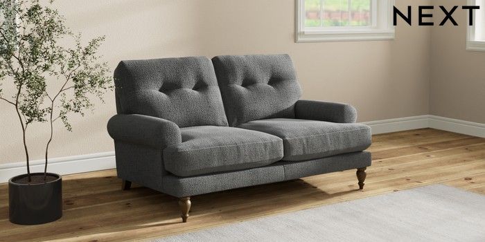 7.2.10 Erin Buttoned Back Deep Relaxed Sit 2 Seater Small Sofa Chunky Texture Dark Grey High Classic Turned - Mid | Made Click here to use our website with more accessibility support, for example screen readers