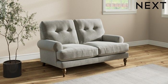 7.2.10 Erin Buttoned Back Deep Relaxed Sit 2 Seater Small Sofa Chunky Texture Dove High Classic Turned - Mid | Made Click here to use our website with more accessibility support, for example screen readers