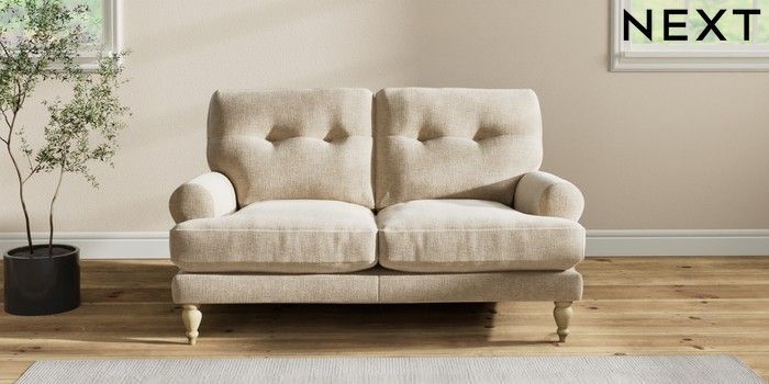 7.2.10 Erin Buttoned Back Deep Relaxed Sit 2 Seater Small Sofa Chunky Weave Cream High Classic Turned - Light | Made Click here to use our website with more accessibility support, for example screen readers