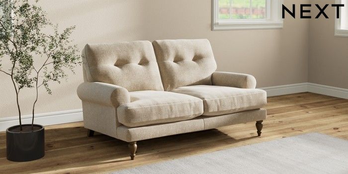 7.2.10 Erin Buttoned Back Deep Relaxed Sit 2 Seater Small Sofa Chunky Weave Cream High Classic Turned - Mid | Made Click here to use our website with more accessibility support, for example screen readers