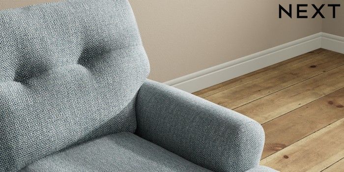 7.2.10 Erin Buttoned Back Deep Relaxed Sit 2 Seater Small Sofa Chunky Weave Mid Blue High Classic Turned - Mid | Made Click here to use our website with more accessibility support, for example screen readers