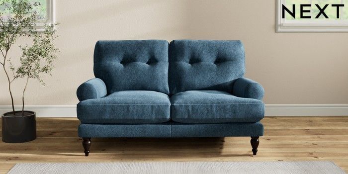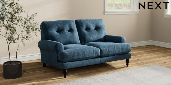 7.2.10 Erin Buttoned Back Deep Relaxed Sit 2 Seater Small Sofa Cotswold Chenille Dark Blue High Classic Turned - Dark | Made Click here to use our website with more accessibility support, for example screen readers