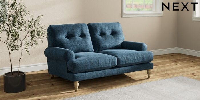 7.2.10 Erin Buttoned Back Deep Relaxed Sit 2 Seater Small Sofa Cotswold Chenille Dark Blue High Classic Turned - Light | Made Click here to use our website with more accessibility support, for example screen readers