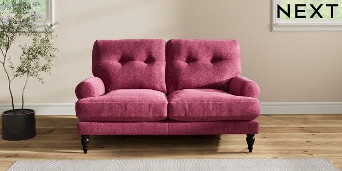 7.2.10 Erin Buttoned Back Deep Relaxed Sit 2 Seater Small Sofa Cotswold Chenille Dark Raspberry Pink High Classic Turned - Dark | Made Click here to use our website with more accessibility support, for example screen readers