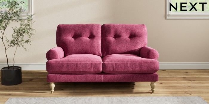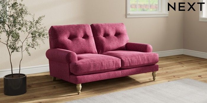 7.2.10 Erin Buttoned Back Deep Relaxed Sit 2 Seater Small Sofa Cotswold Chenille Dark Raspberry Pink High Classic Turned - Light | Made Click here to use our website with more accessibility support, for example screen readers