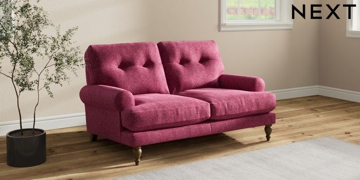 7.2.10 Erin Buttoned Back Deep Relaxed Sit 2 Seater Small Sofa Cotswold Chenille Dark Raspberry Pink High Classic Turned - Mid | Made Click here to use our website with more accessibility support, for example screen readers