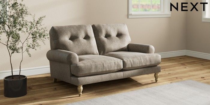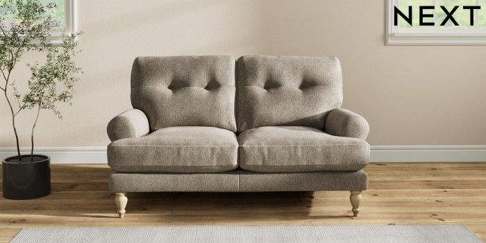 7.2.10 Erin Buttoned Back Deep Relaxed Sit 2 Seater Small Sofa Cotswold Chenille Mid Mink Brown High Classic Turned - Light | Made Click here to use our website with more accessibility support, for example screen readers