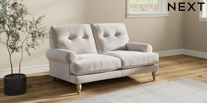 Add charm to your living space with the Erin Button Back Sofa. Its elegant scroll arms and classic button-back cushions create a timeless look. You'll love its "Relaxed Sit" cushions, specially designed for ultimate comfort. These cushions are made with clever foam and fibre, giving you a wonderfully soft, plump feel. To keep them looking their best, simply plump and turn them regularly. Plus, you can make the Erin your own by choosing from a huge range of coloured fabrics.