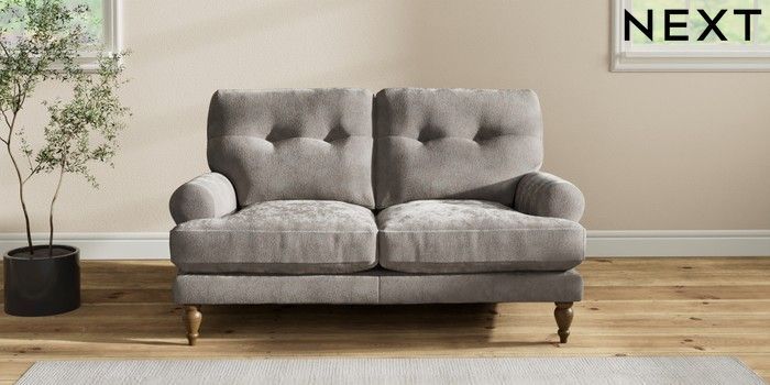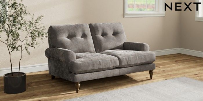 7.2.10 Erin Buttoned Back Deep Relaxed Sit 2 Seater Small Sofa Distressed Velour French Grey High Classic Turned - Mid | Made Click here to use our website with more accessibility support, for example screen readers