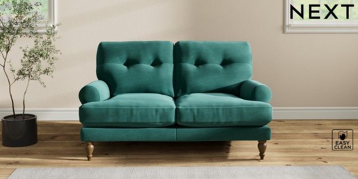 7.2.10 Erin Buttoned Back Deep Relaxed Sit 2 Seater Small Sofa Fine Chenille Easy Clean Dark Juniper Green High Classic Turned - Mid | Made Click here to use our website with more accessibility support, for example screen readers