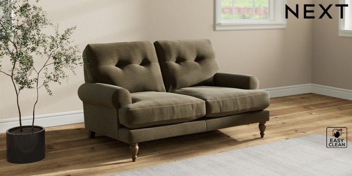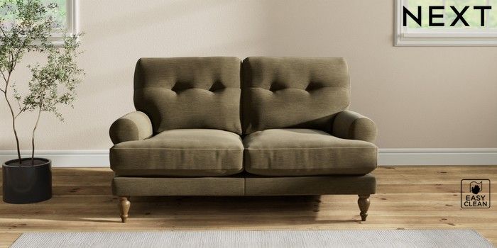 7.2.10 Erin Buttoned Back Deep Relaxed Sit 2 Seater Small Sofa Fine Chenille Easy Clean Dark Moss Green High Classic Turned - Mid | Made Click here to use our website with more accessibility support, for example screen readers