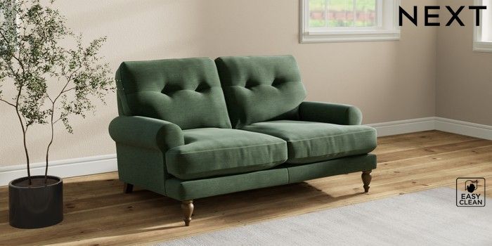 7.2.10 Erin Buttoned Back Deep Relaxed Sit 2 Seater Small Sofa Fine Chenille Easy Clean Mid Khaki Green High Classic Turned - Mid | Made Click here to use our website with more accessibility support, for example screen readers