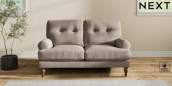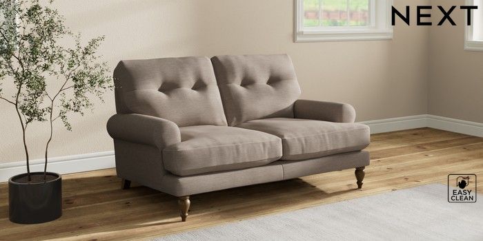 7.2.10 Erin Buttoned Back Deep Relaxed Sit 2 Seater Small Sofa Fine Chenille Easy Clean Mid Taupe Brown High Classic Turned - Mid | Made Click here to use our website with more accessibility support, for example screen readers