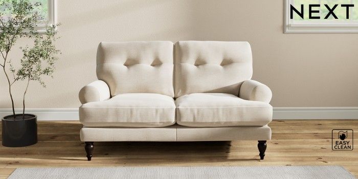 7.2.10 Erin Buttoned Back Deep Relaxed Sit 2 Seater Small Sofa Fine Chenille Easy Clean Oyster High Classic Turned - Dark | Made Click here to use our website with more accessibility support, for example screen readers
