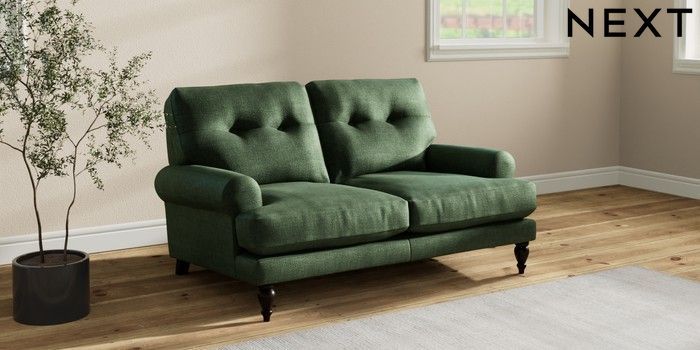 7.2.10 Erin Buttoned Back Deep Relaxed Sit 2 Seater Small Sofa Luxe Chenille Dark Green High Classic Turned - Dark | Made Click here to use our website with more accessibility support, for example screen readers