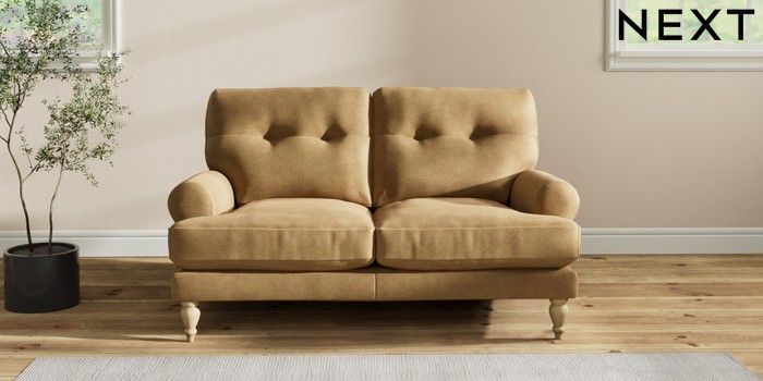 7.2.10 Erin Buttoned Back Deep Relaxed Sit 2 Seater Small Sofa Luxe Chenille Honey Yellow High Classic Turned - Light | Made Click here to use our website with more accessibility support, for example screen readers