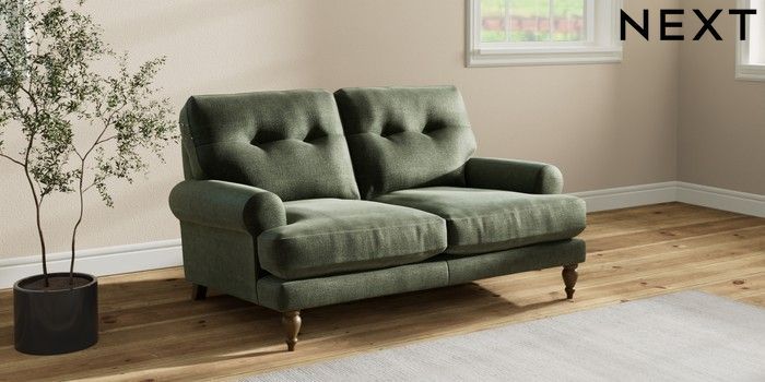 7.2.10 Erin Buttoned Back Deep Relaxed Sit 2 Seater Small Sofa Luxe Chenille Mid Green High Classic Turned - Mid | Made Click here to use our website with more accessibility support, for example screen readers