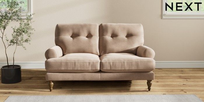 7.2.10 Erin Buttoned Back Deep Relaxed Sit 2 Seater Small Sofa Luxe Chenille Mid Natural High Classic Turned - Mid | Made Click here to use our website with more accessibility support, for example screen readers