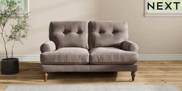 7.2.10 Erin Buttoned Back Deep Relaxed Sit 2 Seater Small Sofa Luxe Chenille Mink Brown High Classic Turned - Mid | Made Click here to use our website with more accessibility support, for example screen readers