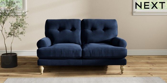 7.2.10 Erin Buttoned Back Deep Relaxed Sit 2 Seater Small Sofa Luxe Chenille Navy Blue High Classic Turned - Light | Made Click here to use our website with more accessibility support, for example screen readers