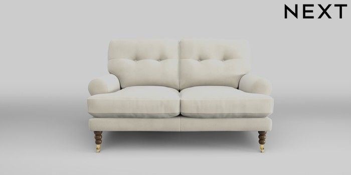 7.2.10 Erin Buttoned Back Deep Relaxed Sit 2 Seater Small Sofa Luxe Chenille Oyster High Classic Turned Brass Castor - Mid | Made Click here to use our website with more accessibility support, for example screen readers