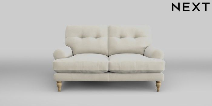 7.2.10 Erin Buttoned Back Deep Relaxed Sit 2 Seater Small Sofa Luxe Chenille Oyster High Classic Turned - Light | Made Click here to use our website with more accessibility support, for example screen readers