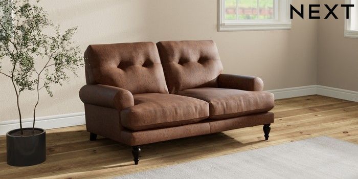 7.2.10 Erin Buttoned Back Deep Relaxed Sit 2 Seater Small Sofa Monza Faux Leather Easy Clean Chestnut Brown High Classic Turned - Dark | Made Click here to use our website with more accessibility support, for example screen readers