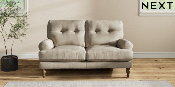 7.2.10 Erin Buttoned Back Deep Relaxed Sit 2 Seater Small Sofa Monza Faux Leather Easy Clean Mink Brown High Classic Turned - Mid | Made Click here to use our website with more accessibility support, for example screen readers