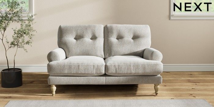 7.2.10 Erin Buttoned Back Deep Relaxed Sit 2 Seater Small Sofa Multi Weave Light Blue High Classic Turned - Light | Made Click here to use our website with more accessibility support, for example screen readers