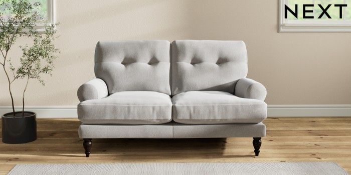 7.2.10 Erin Buttoned Back Deep Relaxed Sit 2 Seater Small Sofa Natural Mix Light Grey High Classic Turned - Dark | Made Click here to use our website with more accessibility support, for example screen readers