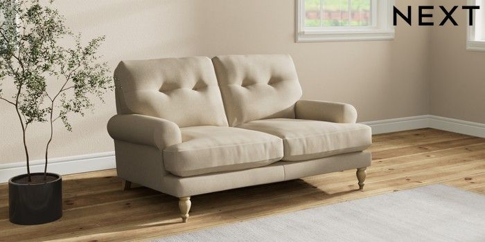 7.2.10 Erin Buttoned Back Deep Relaxed Sit 2 Seater Small Sofa Natural Mix Light Natural High Classic Turned - Light | Made Click here to use our website with more accessibility support, for example screen readers