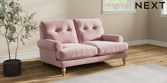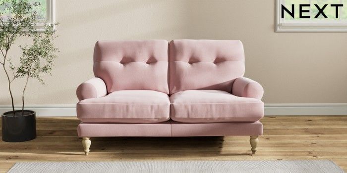 7.2.10 Erin Buttoned Back Deep Relaxed Sit 2 Seater Small Sofa Natural Mix Light Rose Pink High Classic Turned - Light | Made Click here to use our website with more accessibility support, for example screen readers
