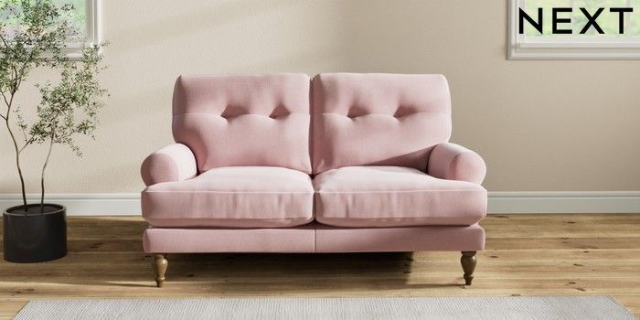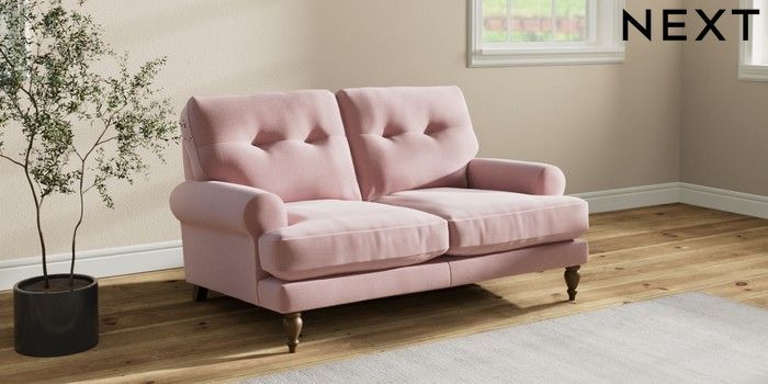 7.2.10 Erin Buttoned Back Deep Relaxed Sit 2 Seater Small Sofa Natural Mix Light Rose Pink High Classic Turned - Mid | Made Click here to use our website with more accessibility support, for example screen readers