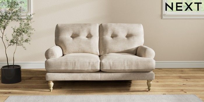 7.2.10 Erin Buttoned Back Deep Relaxed Sit 2 Seater Small Sofa Plush Chenille Light Natural High Classic Turned - Light | Made Click here to use our website with more accessibility support, for example screen readers