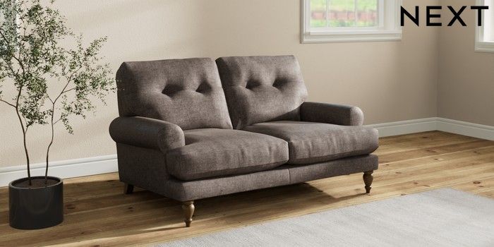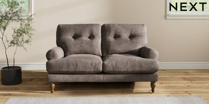 7.2.10 Erin Buttoned Back Deep Relaxed Sit 2 Seater Small Sofa Plush Chenille Mink Brown High Classic Turned - Mid | Made Click here to use our website with more accessibility support, for example screen readers