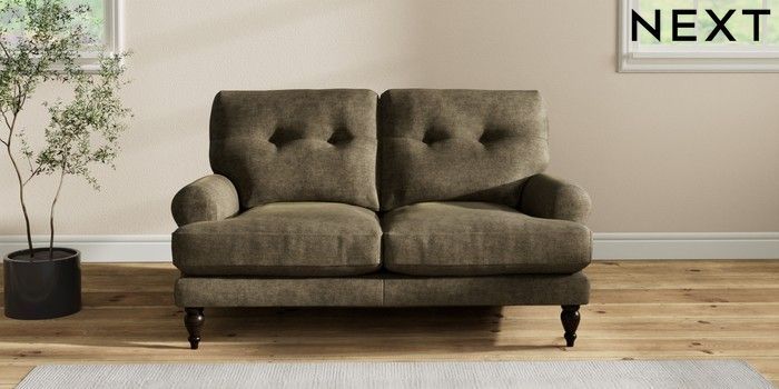 7.2.10 Erin Buttoned Back Deep Relaxed Sit 2 Seater Small Sofa Plush Chenille Moss Green High Classic Turned - Dark | Made Click here to use our website with more accessibility support, for example screen readers