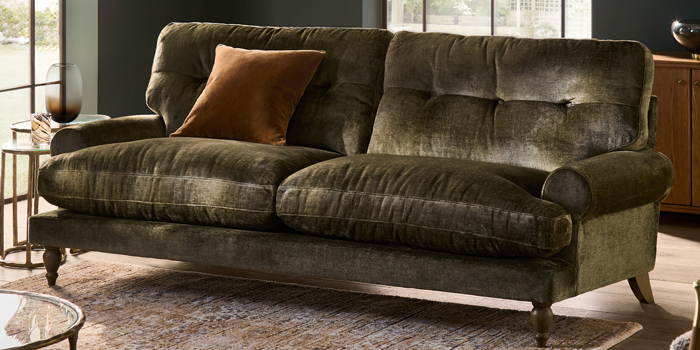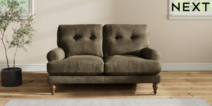 7.2.10 Erin Buttoned Back Deep Relaxed Sit 2 Seater Small Sofa Plush Chenille Moss Green High Classic Turned - Mid | Made Click here to use our website with more accessibility support, for example screen readers