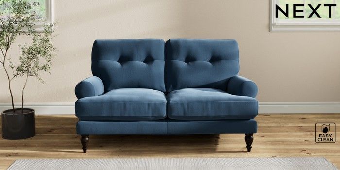 7.2.10 Erin Buttoned Back Deep Relaxed Sit 2 Seater Small Sofa Plush Velvet Easy Clean Airforce Blue High Classic Turned - Dark | Made Click here to use our website with more accessibility support, for example screen readers
