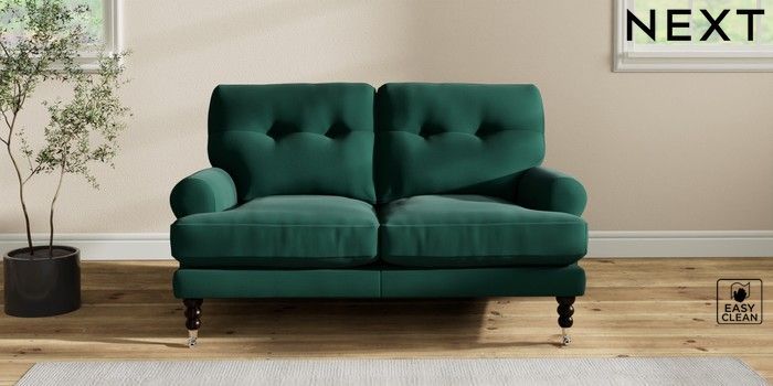 7.2.10 Erin Buttoned Back Deep Relaxed Sit 2 Seater Small Sofa Plush Velvet Easy Clean Bottle Green High Classic Turned Chrome Castor - Dark | Made Click here to use our website with more accessibility support, for example screen readers