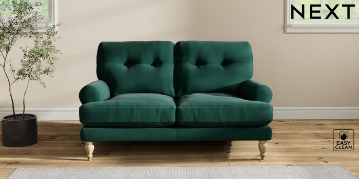 7.2.10 Erin Buttoned Back Deep Relaxed Sit 2 Seater Small Sofa Plush Velvet Easy Clean Bottle Green High Classic Turned - Light | Made Click here to use our website with more accessibility support, for example screen readers