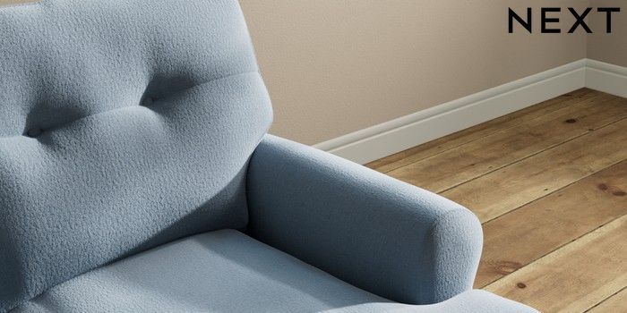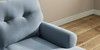 7.2.10 Erin Buttoned Back Deep Relaxed Sit 2 Seater Small Sofa Relaxed Linen Look Mid Blue High Classic Turned Chrome Castor - Light | Made Click here to use our website with more accessibility support, for example screen readers