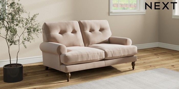 7.2.10 Erin Buttoned Back Deep Relaxed Sit 2 Seater Small Sofa Relaxed Linen Look Mid Natural High Classic Turned - Mid | Made Click here to use our website with more accessibility support, for example screen readers