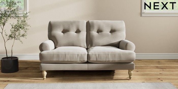 7.2.10 Erin Buttoned Back Deep Relaxed Sit 2 Seater Small Sofa Ripple Chenille Light Natural High Classic Turned - Light | Made Click here to use our website with more accessibility support, for example screen readers