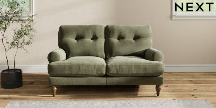 7.2.10 Erin Buttoned Back Deep Relaxed Sit 2 Seater Small Sofa Ripple Chenille Mid Moss Green High Classic Turned - Mid | Made Click here to use our website with more accessibility support, for example screen readers