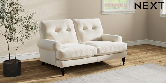 7.2.10 Erin Buttoned Back Deep Relaxed Sit 2 Seater Small Sofa Ripple Chenille Oyster High Classic Turned - Dark | Made Click here to use our website with more accessibility support, for example screen readers