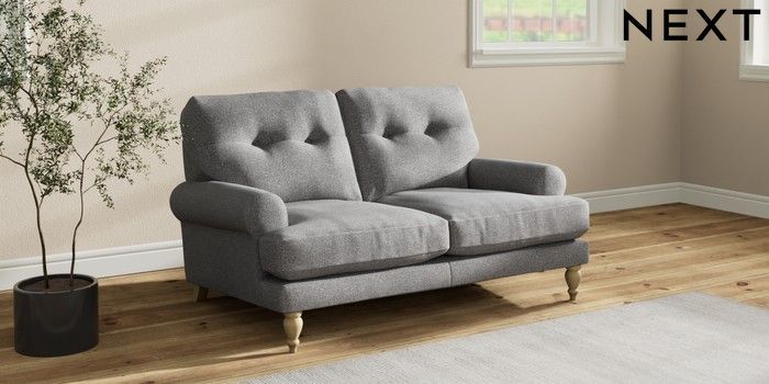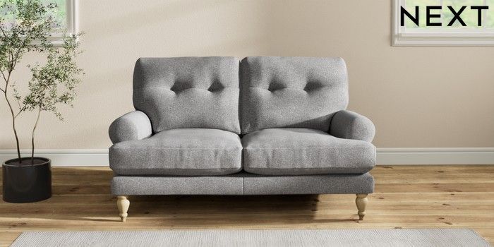 7.2.10 Erin Buttoned Back Deep Relaxed Sit 2 Seater Small Sofa Studio Chenille Mid Grey High Classic Turned - Light | Made Click here to use our website with more accessibility support, for example screen readers