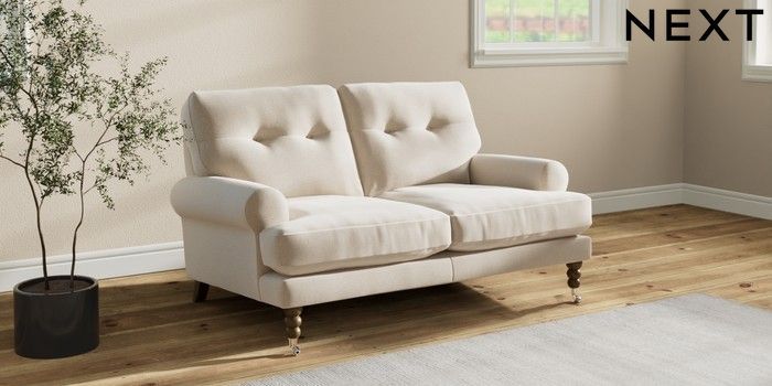 Add charm to your living space with the Erin Button Back Sofa. Its elegant scroll arms and classic button-back cushions create a timeless look. You'll love its "Relaxed Sit" cushions, specially designed for ultimate comfort. These cushions are made with clever foam and fibre, giving you a wonderfully soft, plump feel. To keep them looking their best, simply plump and turn them regularly. Plus, you can make the Erin your own by choosing from a huge range of coloured fabrics.