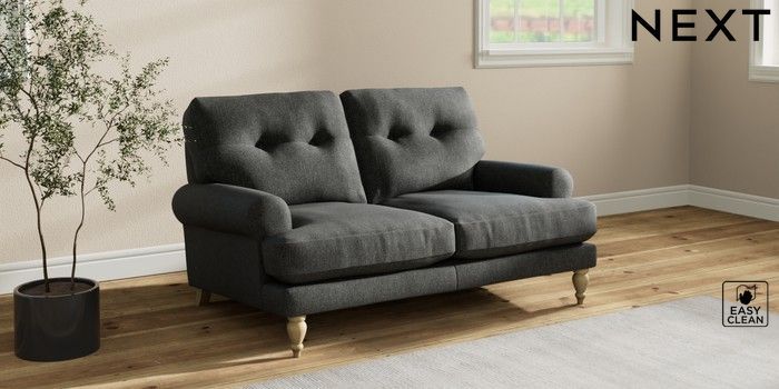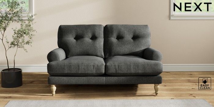 7.2.10 Erin Buttoned Back Deep Relaxed Sit 2 Seater Small Sofa Tweedy Blend Easy Clean Charcoal Grey High Classic Turned - Light | Made Click here to use our website with more accessibility support, for example screen readers