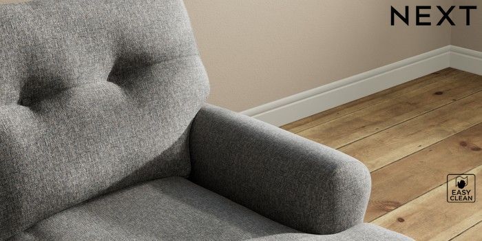 7.2.10 Erin Buttoned Back Deep Relaxed Sit 2 Seater Small Sofa Tweedy Blend Easy Clean Dark Grey High Classic Turned Chrome Castor - Light | Made Click here to use our website with more accessibility support, for example screen readers