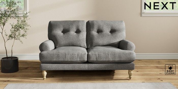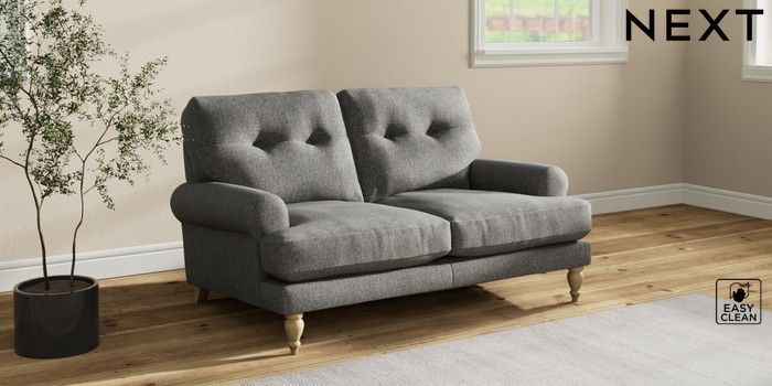 7.2.10 Erin Buttoned Back Deep Relaxed Sit 2 Seater Small Sofa Tweedy Blend Easy Clean Dark Grey High Classic Turned - Light | Made Click here to use our website with more accessibility support, for example screen readers